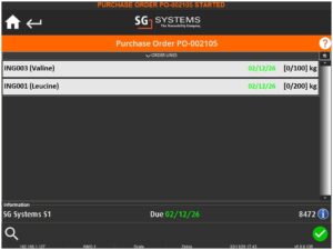 So in this example we have a scheduled PO for 200kg of Leucine and 100kg of Valine that we will go to receive in WMS.