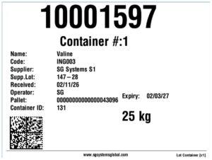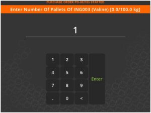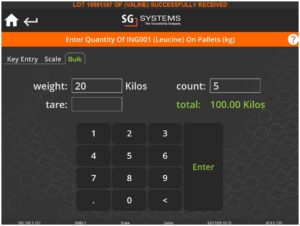 We can also receive multiple pallets at once using this same methodology. Let’s do this with the 200kg of Leucine on the order, received on 2x pallets in 20kg containers.
