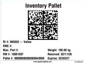 Pallet labels can then be scanned and the newly received stock can be adjusted/split as necessary, moved to production or used for Material Issue.