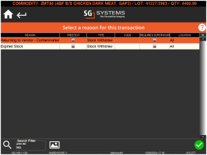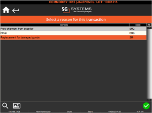 In the example below, we can attempt to add new stock for a commodity via the WMS ‘Commodities’ screen. Upon doing so, we are presented with the reasons we have set up for this event.