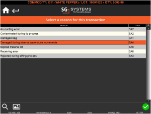 These Reasons will be displayed in WMS to an operator when they attempt to change stock levels for a particular commodity. Let’s use an example below of 5000lbs of white pepper.