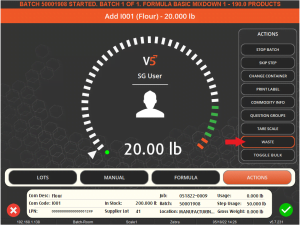 The stock write-off function is featured in the Terminal software, and allows operators to ‘waste’ specific amounts of commodities used during batching. This can be accessed by the operator by pressing the ‘actions’ button while undertaking batch production.