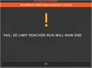 Note how the operator is not asked to scan a lot for the product, allowing the subject of SPC runs to be selected at random from existing stock. Of course, if it is desirable to know what lot is being tested then this can be asked as a pre-run question as indicated above.