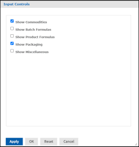 We have the option here to select what unused commodities we want to show on the report. These are: