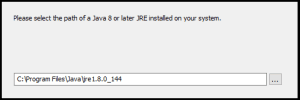 During installation you will be asked to point the installer at the JRE install folder. This should be auto-filled, but if not then you will need to nominate the correct folder.