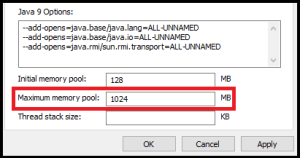 It is also recommended to increase the maximum memory pool of Tomcat to 1024 MB in order to better handle larger data requests: