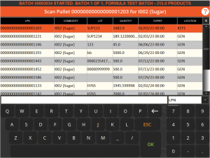 Operators can also manually search for lots by selecting a parameter from the drop down at the bottom right of the screen and then typing into the search bar.