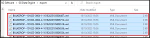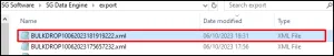 在选择散装分配器的同时,如果使用文件交换通信方法,则上述XML文件将被导出到数据引擎的导出文件夹中。