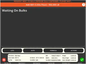 此过程的关键点在于,与剩余的手动添加步骤相比,可以随时对配方中的多个散装成分进行称重。 在我们的示例中,我们在当天早些时候对散装货物进行了称重,但这些可以在执行作业前几天完成,它们可以与作业一起处理,甚至可以稍后添加,具体取决于系统设置。